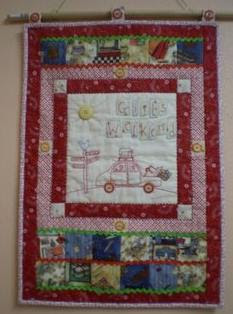 Check out the amazing items that Erika made for Beatrice! There is a beautiful wallhanging, which has so much stitching and detail! It looks fantastic.